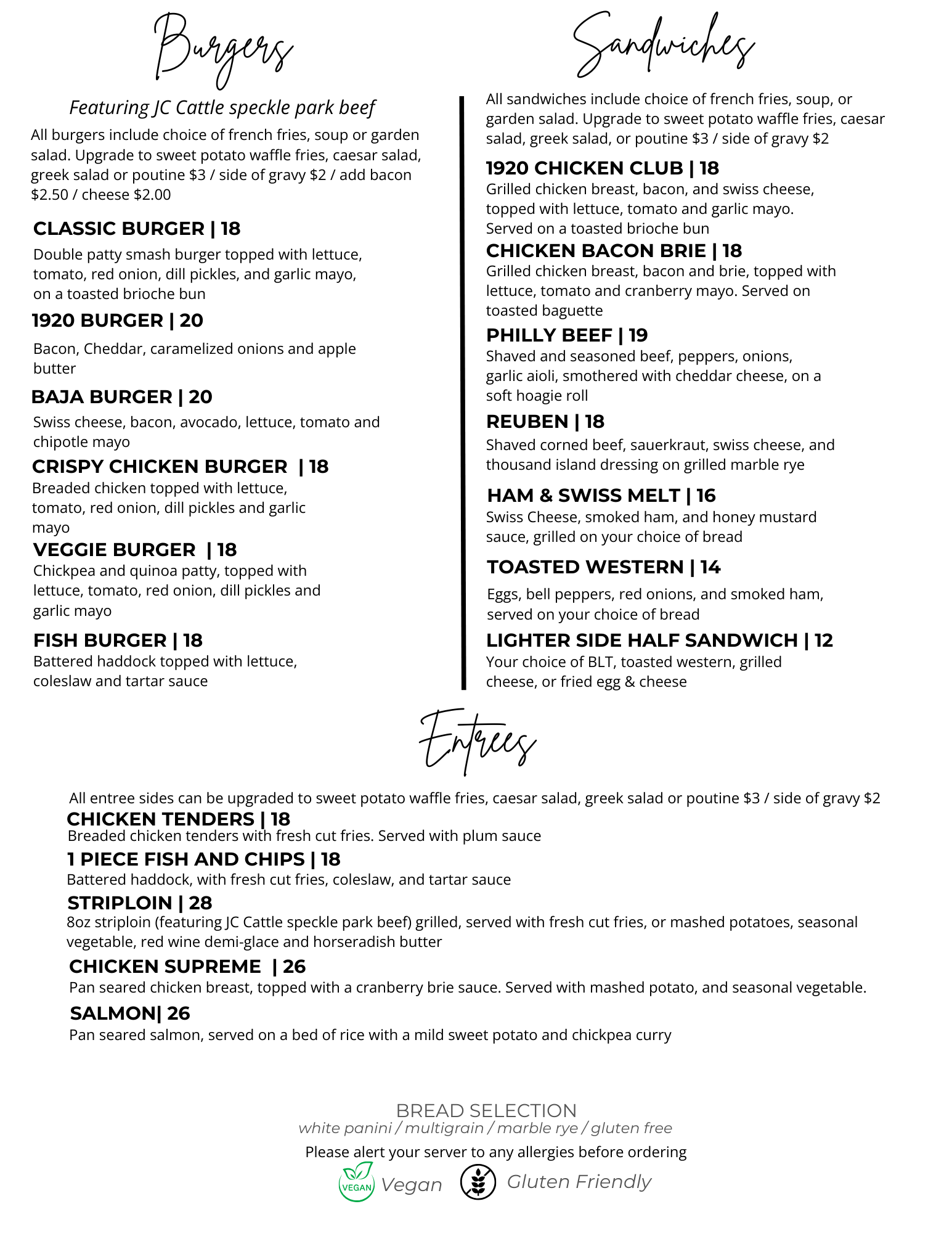 Current Menus