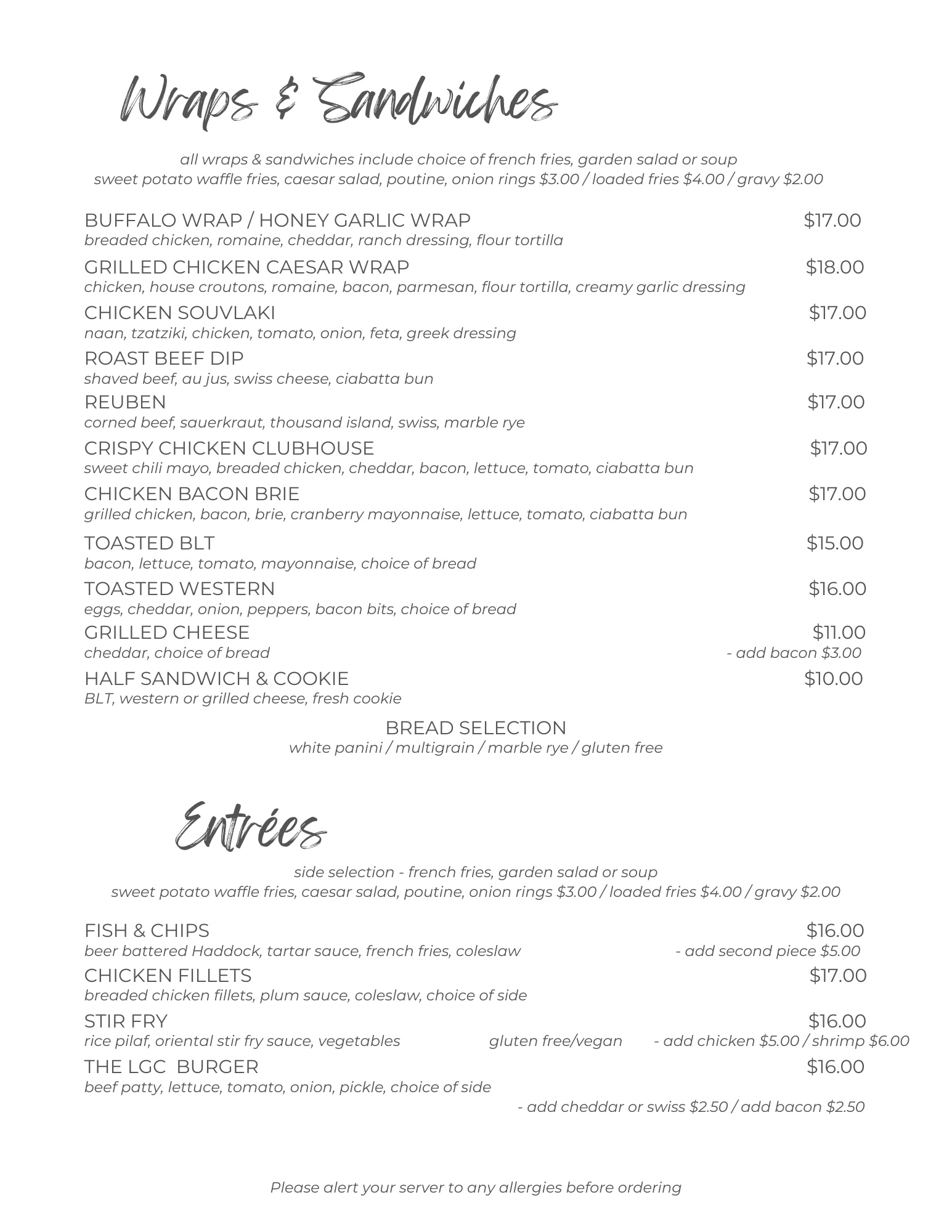Welcome to the 1920 Lounge at the Listowel Golf Club. Every dish meaningfully prepared using fresh ingredients with inspiration drawn from the roots of Listowel’s heritage. Beyond the menu, revel in the scenic backdrop of the densely wooded & sprawling greens of our club.